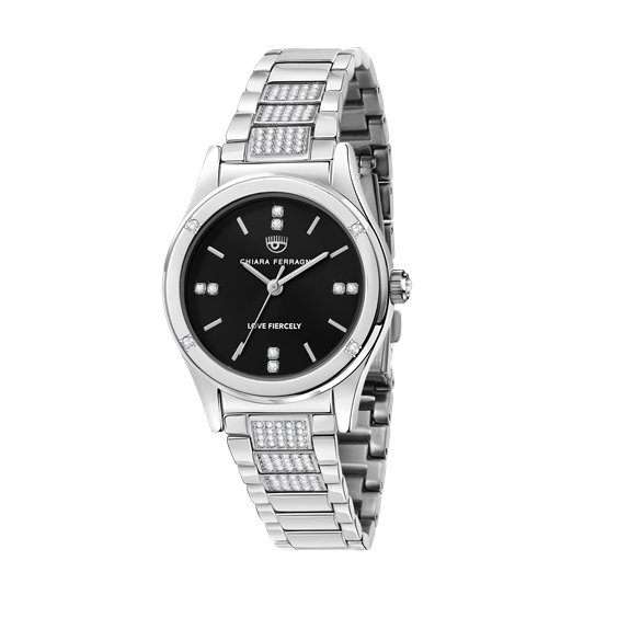 Genere: Donna, Materiale e finitura cassa: Acciaio, Cristalli, Misura cassa: 32mm, Spessore cassa: 8,60, Finitura cassa: Lucido, Colore cassa: Silver, Vetro: Vetro minerale, Materiale cinturino: Metallo, Colore cinturino: Silver, Chiusura: Fibbia deplojante con pulsanti, Movimento: Quarzo, Water resistant: 5 atm