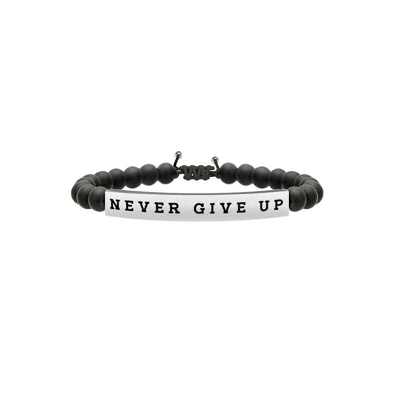 Bracciale Kidult acciaio anallergico 316L e onice con dicitura NEVER GIVE UP Chiusura regolabile con cordino. Questo BRACCIALE verrà spedito con Scatola Originale KIDULT + GARANZIA.