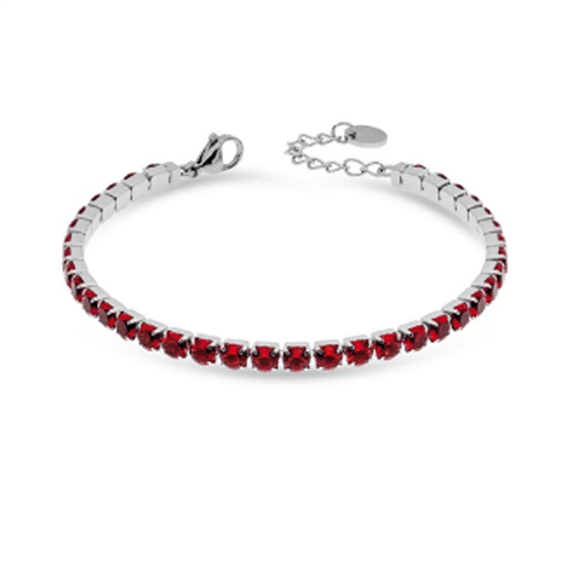 Bracciale donna liu jo, lj2418, collezione essential, in acciaio con zirconi rossi, lunghezza 17+3cm