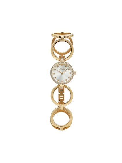 Orologio da donna di LiuJo da donna della collezione RINGS. Movimento Miyota cal. GL22. Cassa in acciaio inossidabiledi colore oro. Dimensione della cassa 21,5 mm Vetro minerale. Il colore del quadrante è Gold. Pietre su lunetta.Il cinturino è in acciaio inossidabile di colore oro. Resistenza all'acqua di 3 atm.