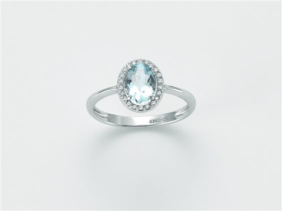 Acqua Marina: Numero gemme:1 Taglio: OVALE Carati: 1 DIAMANTE Numero gemme: 22 Taglio: BRILLANTE Carati: Pt.tot 8.8 Colore: G Selezionato Note: Microfusione Griffes L'articolo è completo di certificato di garanzia della durata di 2 anni.