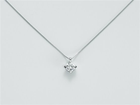 Oro 750/1000 Nr. 1 Diamanti Pt.tot. 25 Col.G Selezionato Taglio Brillante Rotondo Catenina veneziana bianca Microfusione