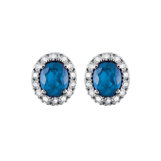 Orecchini a lobo della collezione Dora in oro bianco con zaffiro taglio ovale di caratura 0.87 e diamanti a taglio ovale di caratura 0.19 di colore G.