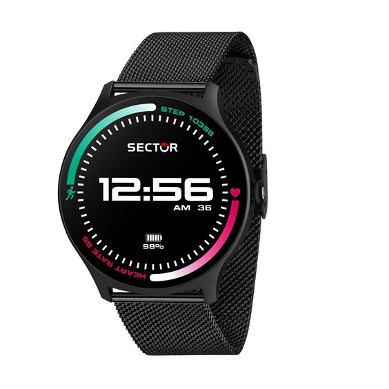 Smartwatch uomo, cassa nera acciaio 51.00x45.00mm spessore 12.50mm. Vetro minerale, cinturino acciaio nero chiusura clip e gancio. Movimento: Digitale. Water resistant Ip68. Garanzia ufficiale 2 anni Sector. Confezione: Originale Sector